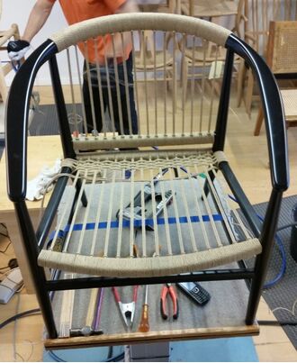 En gennemgribende restaurering med nedslibning, limning, maling og nyt flet var ikke helt billig, og kunden var tøvende – men stolens historie fik den alligevel op i lyset.