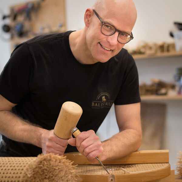Knud er chefen. Han har stået i mesterlære hos Leif Mortensen, før han overtog forretningen i 2005. Knud er stolefletter siden 1992, ”all-round” håndværker og fragtmand. Det er Knud der tager de store beslutninger og det er ham der sørger for, at Balderus er en god arbejdsplads.
